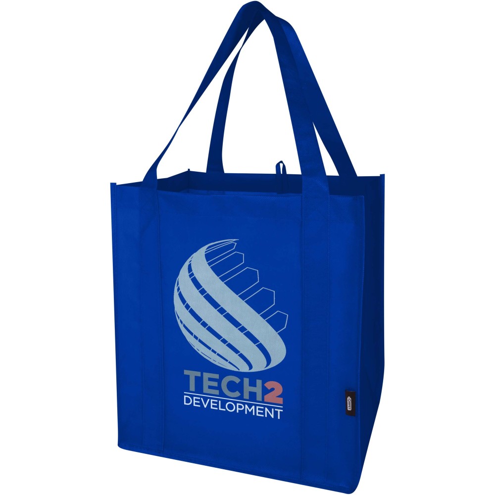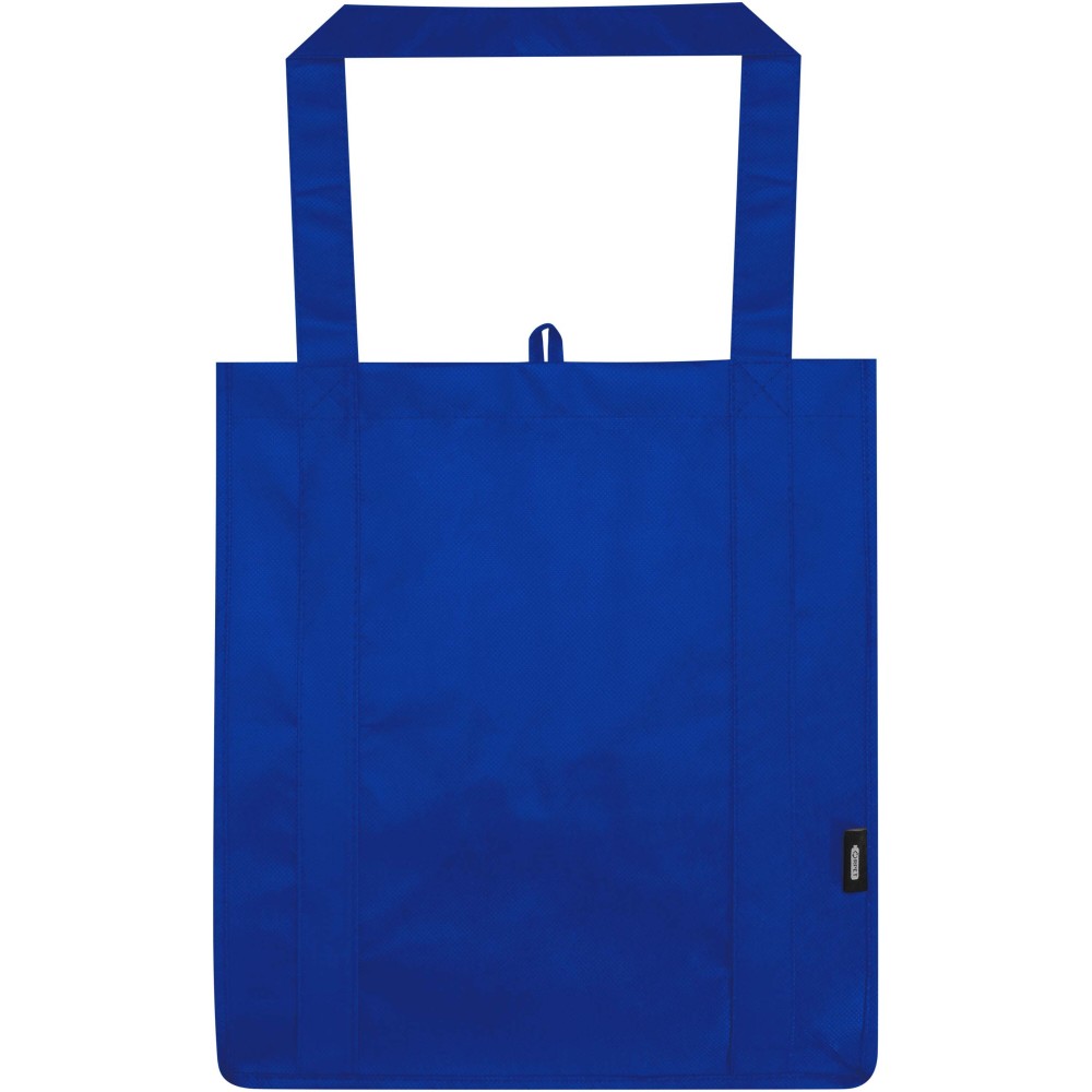 A Liberty GRS tanúsítvánnyal rendelkező újrahasznosított bevásárlótáska tartós és szakadásálló nem szőtt RPET anyagból készült, megerősített aljrésszel, amely extra stabilitást és sokoldalú felhasználást biztosít. A táska nagy méretű főrekesszel és 25 cm hosszú fülekkel rendelkezik, így kényelmesen hordozható. Űrtartalma: 29 liter. Teherbírás: akár 12 kg.