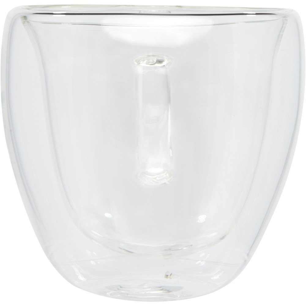 2 db-os duplafalú, hőkezelt üveg kávéskészlet bambusz alátéttel. A bambusz fenntartható, környezeti és társadalmilag felelős forrásokból származik. A duplafalú boroszilikát üvegnek köszönhetően az ital hőmérséklete hosszú ideig megmarad. Űrtartalma 100 ml. Alátét mérete: 8 x 8 x 1 cm. Boroszilikát üveg, bambusz. Mosogatógépben nem tisztítható.