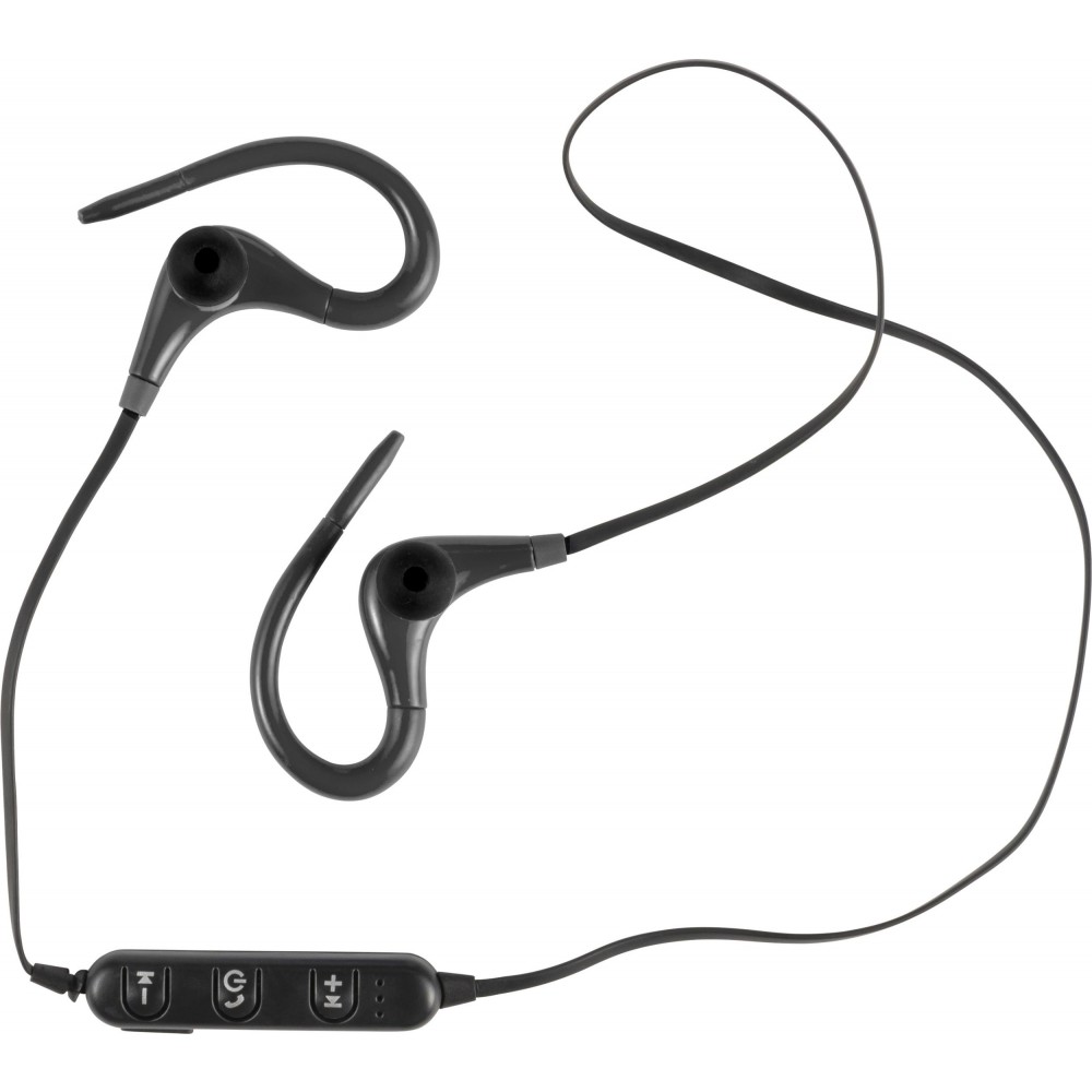 Vezeték nélküli fülhallgató, távvezérlővel és mikrofonnal a kihangosított hívásokhoz. A kábel hossza 55 cm. Csomagolás cipzáras tokban. A mikro USB töltőkábelt tartalmazza. ABS műanyag.