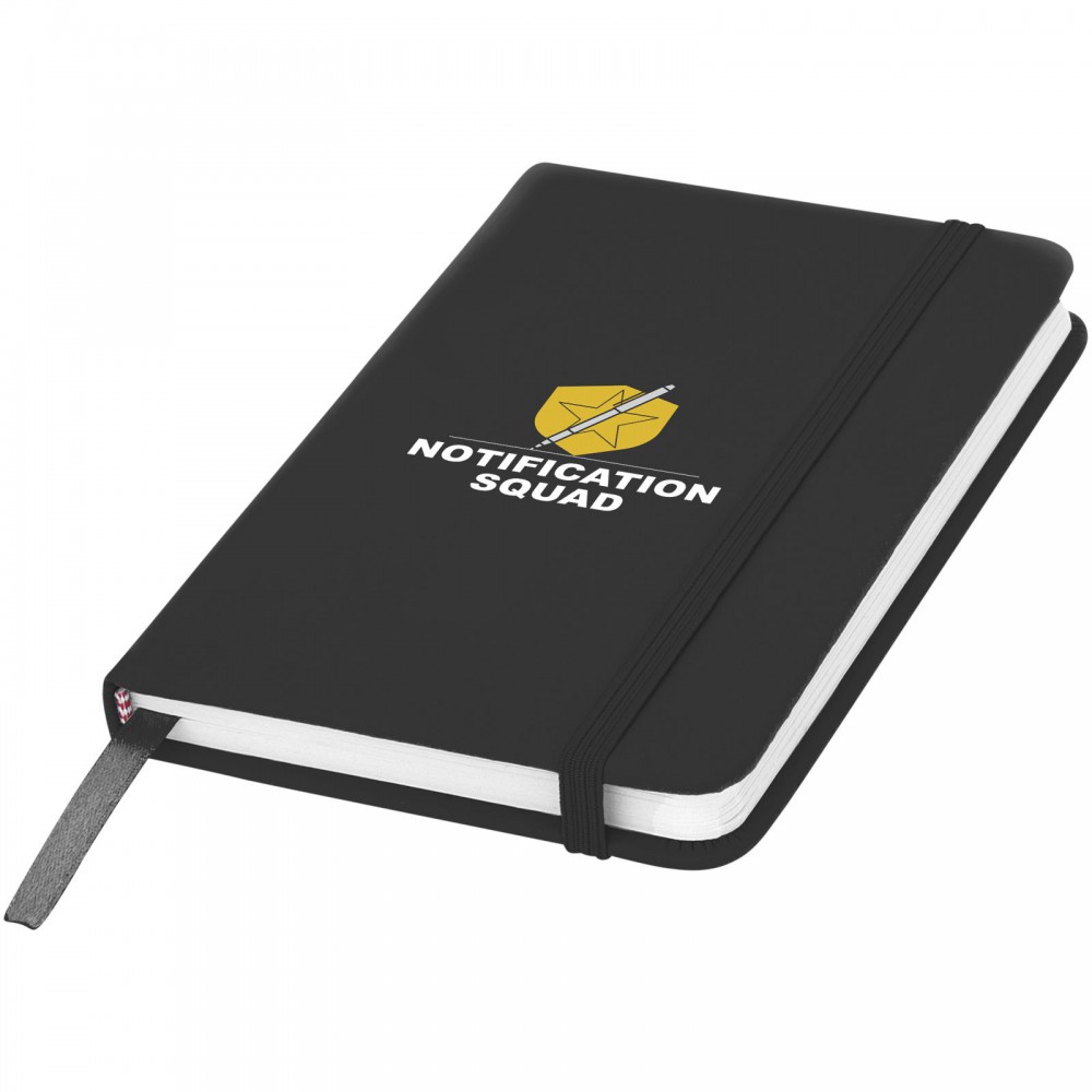 Spectrum A6 jegyzetfüzet színes fedéllel, jelölőszalaggal és gumipánttal, 96 vonalas lappal (60g/m2). PVC fedett karton.