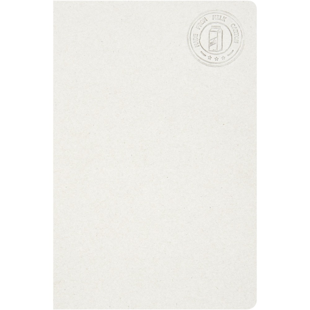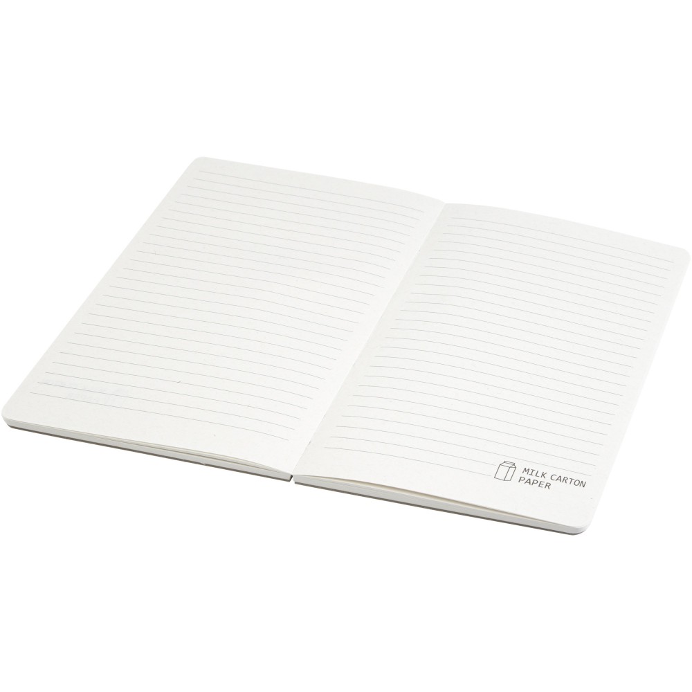 A5-ös méretű jegyzetfüzet 70 db 80 g/m2-es vonalas lappal, újrahasznosított tejesdobozokból (70%). A használt tejes kartondobozokat összegyűjtik, válogatják, feldolgozzák és papírrá alakítják, valóban hasznossá alakítva a hulladékot.