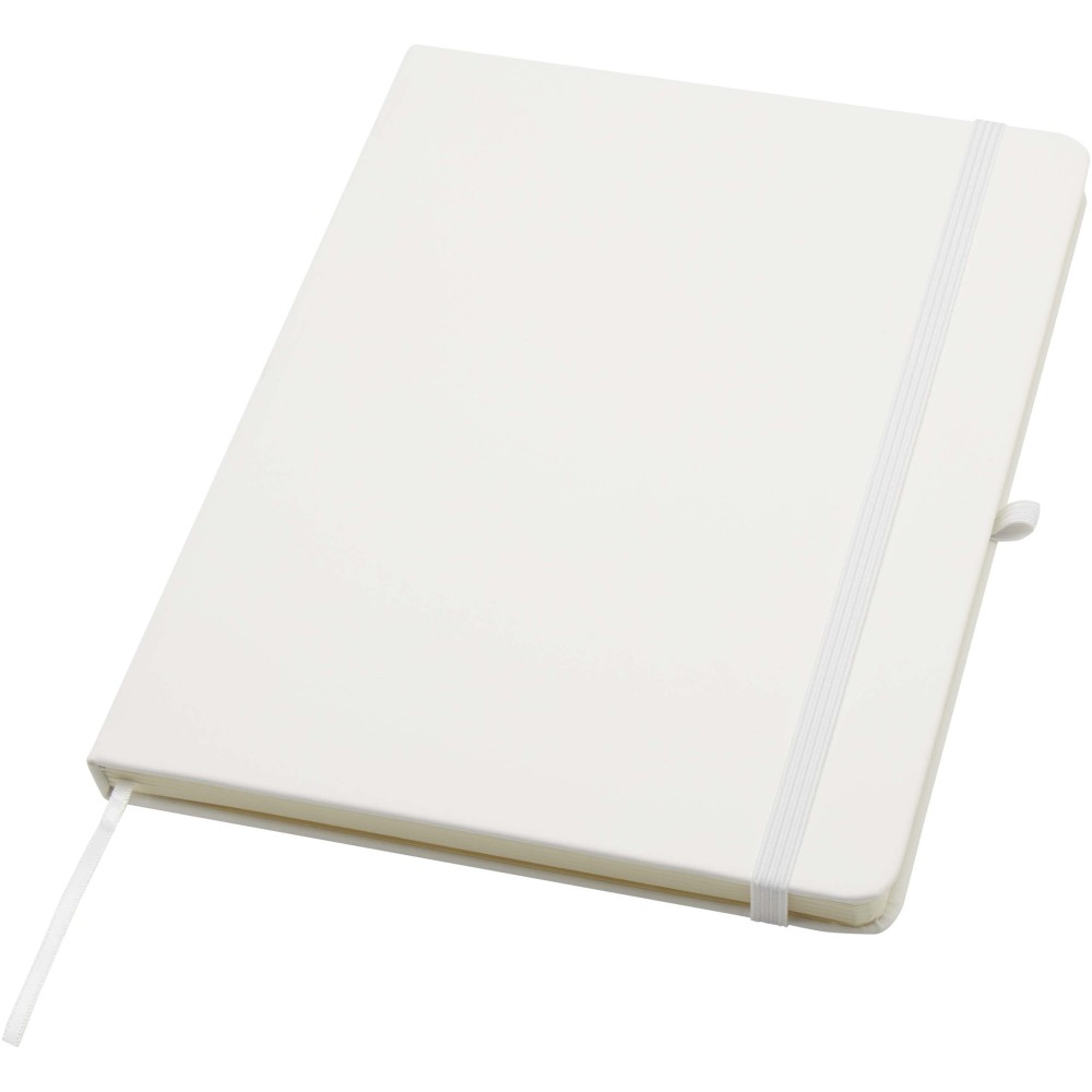 A Spectrum Plus A5 keményfedeles jegyzetfüzet lekerekített sarkokkal nemcsak az irodai mindennapok elengedhetetlen kelléke, hanem remek lehetőség márkád népszerűsítésére is. A jegyzetfüzet puha tapintású borítóval rendelkezik és 80 vonalas, krémszínű, 70 g/m2-es lapból áll, amely tökéletes gyors ötletek vagy hosszabb jegyzetek rögzítésére. A jegyzetfüzet tolltartó hurokkal, gumiszalagos záródással, könyvjelzővel és harmonikazsebbel van ellátva.