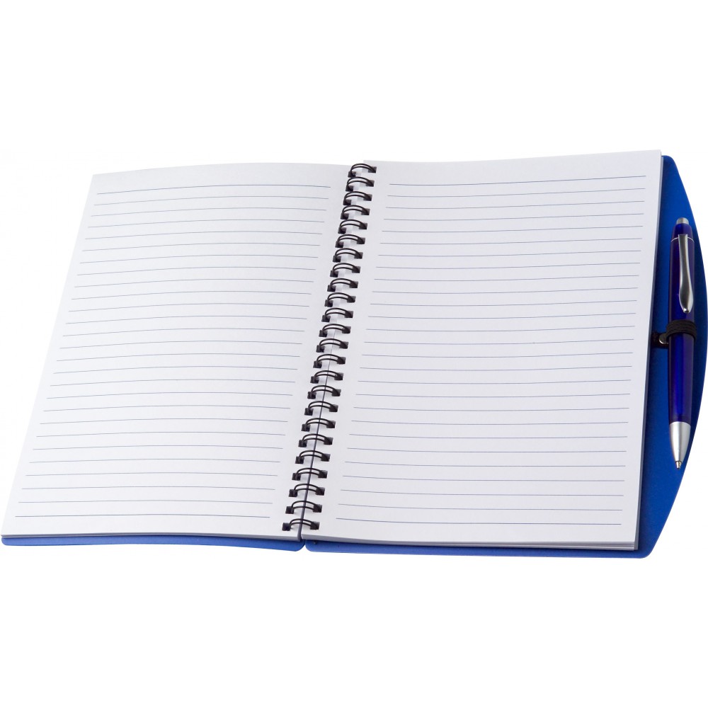 A5-ös spirálfüzet műanyag tollal, kék