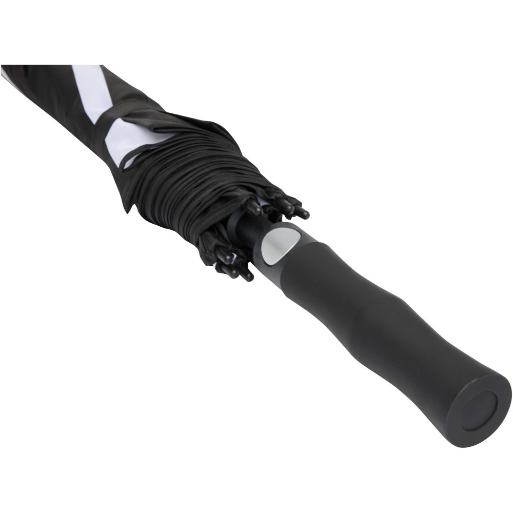 A Jeff szélálló golfesernyő tágas, 55 hüvelykes poliészter ernyőrésszel rendelkezik, amely kényelmesen megvéd több személyt is az időjárástól. Erős üvegszálas szára és váza kiváló rugalmasságot biztosít, így jól ellenáll az erős szélnek. Praktikus műanyag fogantyúja automata nyitógombbal van ellátva, ami gyors és egyszerű használatot tesz lehetővé. Kontrasztos ernyőpaneljei remek lehetőséget kínálnak feltűnő, látványos emblémázásra, így ideális választás rendezvényekhez, promóciókhoz vagy mindennapi használatra.