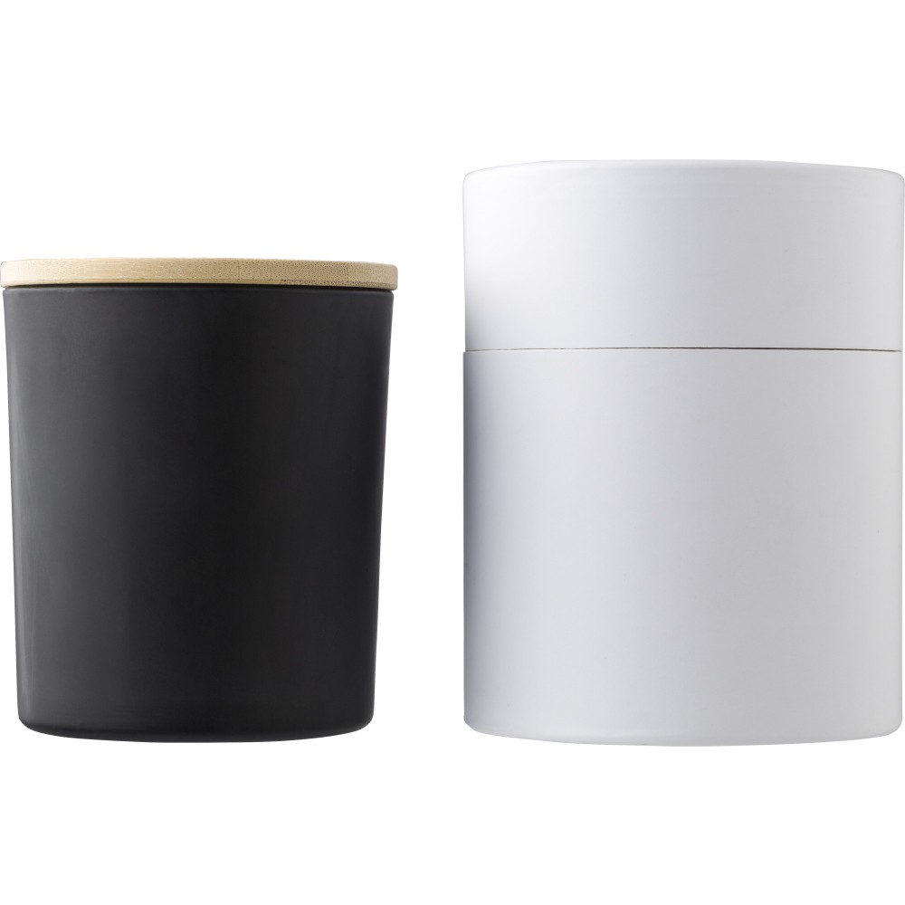 Üveggyertya növényi alapú viasszal és bambusz fedővel. A gyertya főleg növényi viaszt (karnaubaviaszt) tartalmaz, égési ideje körülbelül 20 óra. Négy illat az üveg színétől függően: fahéj (piros), vanília (fehér), szantálfa (fekete) és jázmin (zöld). Egyenként, fehér papírpalástba csomagolva.