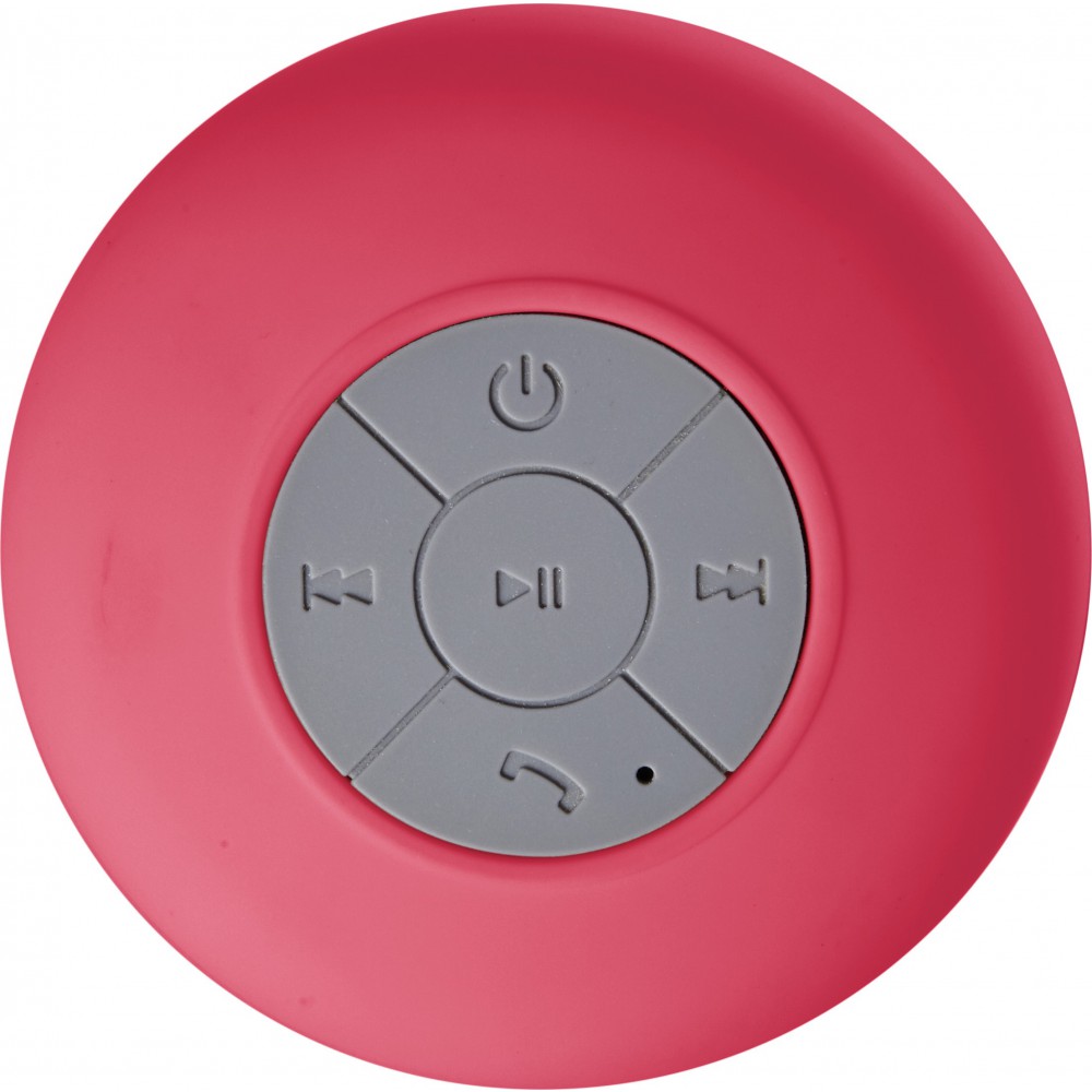 Vízálló Bluetooth hangszóró. Tökéletes megoldás bejövő hívások fogadására kéz használata nélkül vagy zenét hallgatni a zuhany alatt. Sima felületeken tapadókoronggal rögzíthető. Műanyag.