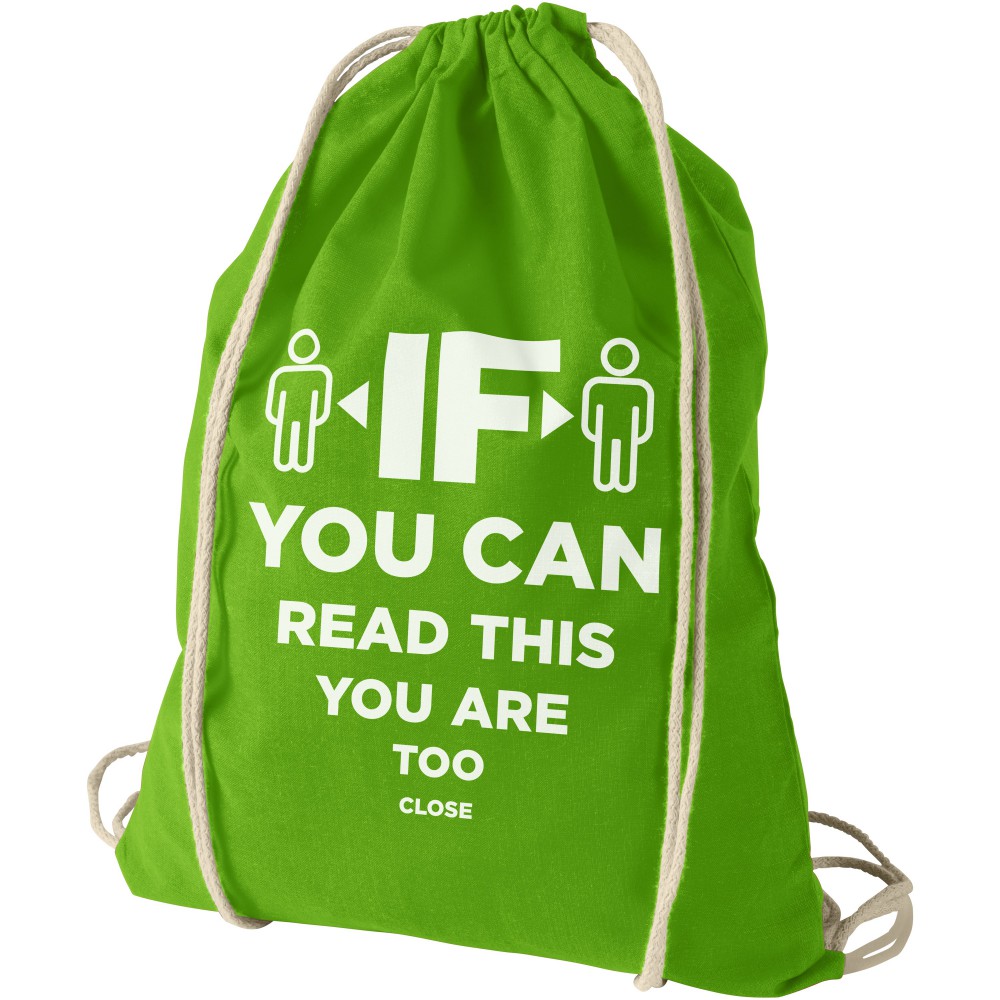 Húzózsinórral zárható nyitott fő rekesz. 100 g/m2 pamut.