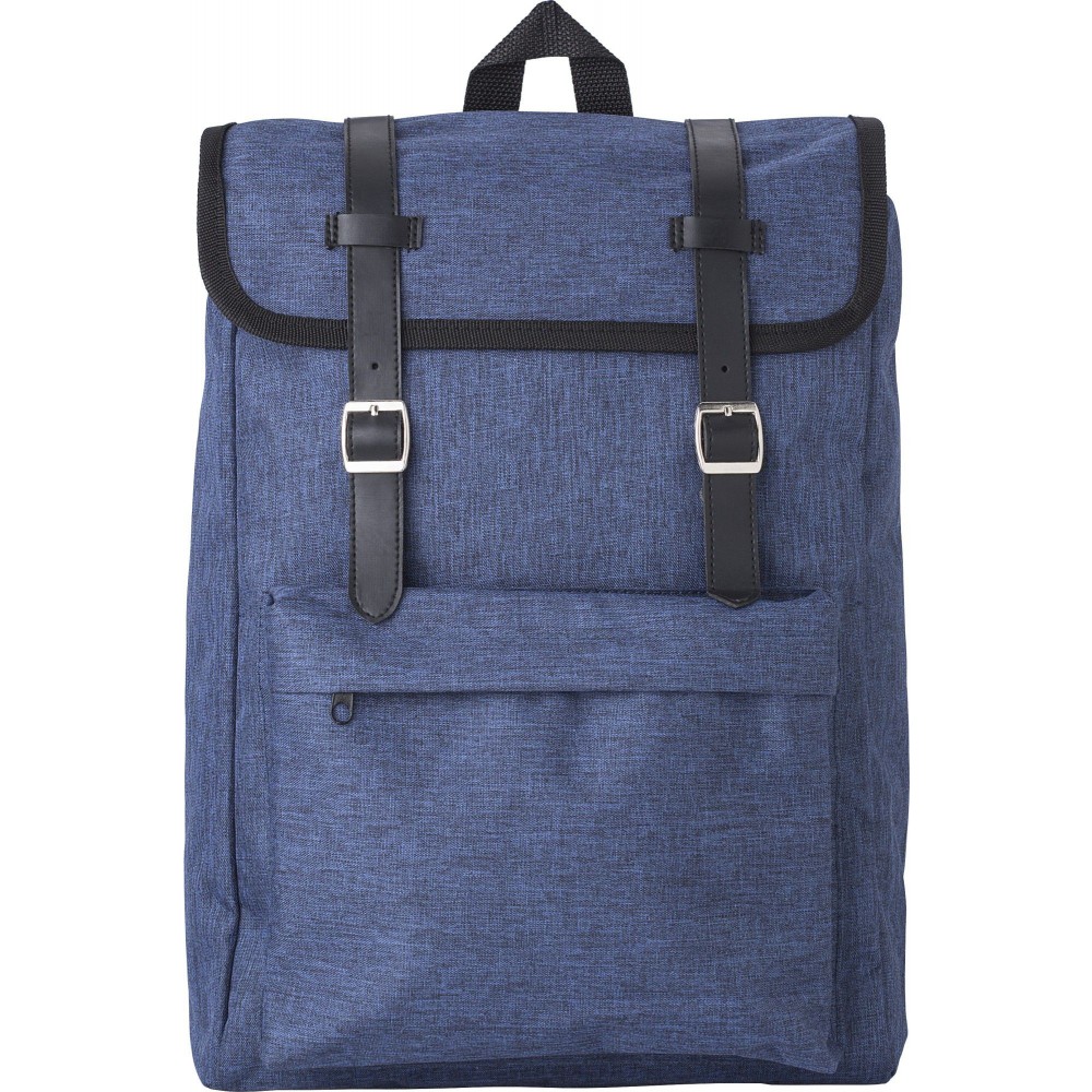Hátizsák cipzáros első zsebbel, 2 fém csattal, párnázott háttal és párnázott, állítható vállpánttal. 300D + 210D poliészter.