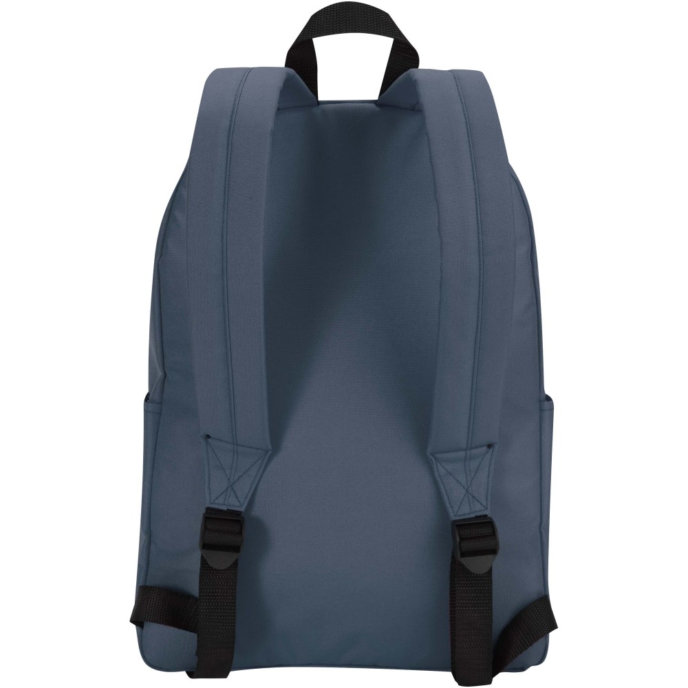 Vízlepergető, GRS tanúsítvánnyal rendelkező, újrahasznosított poliészterből készült a Byron városi laptop hátizsák, amely ideális választás munkába, iskolába vagy városi kiruccanásokra. Karcsú kialakítása 16 literes kapacitást kínál, valamint külön párnázott rekeszt akár 14" laptop számára. Belsejében praktikus rendszerező zsebek segítenek rendben tartani a felszerelést, míg két oldalsó zseb és egy cipzáras elülső zseb biztosít gyors hozzáférést a legfontosabb dolgokhoz. Akár ingázol, akár a várost fedezed fel, ez a kényelmes laptop hátizsák minden lépésnél stílust, tartósságot és funkcionalitást nyújt.