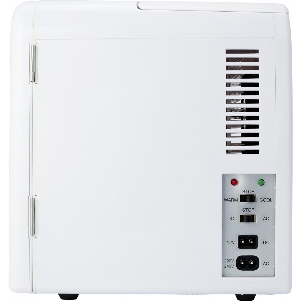 6 db dobozos üdítőital számára kialakított minihűtő. DC 12V AC 100-240V. Hűtőkapacitás -20/-25 °C a környező hőmérséklethez képest. Minimális hőmérséklet, amit biztosít: -2 °C. Fűtőkapacitás 50 °C. Autóban is használható, szivargyújtóhoz csatlakoztatható.