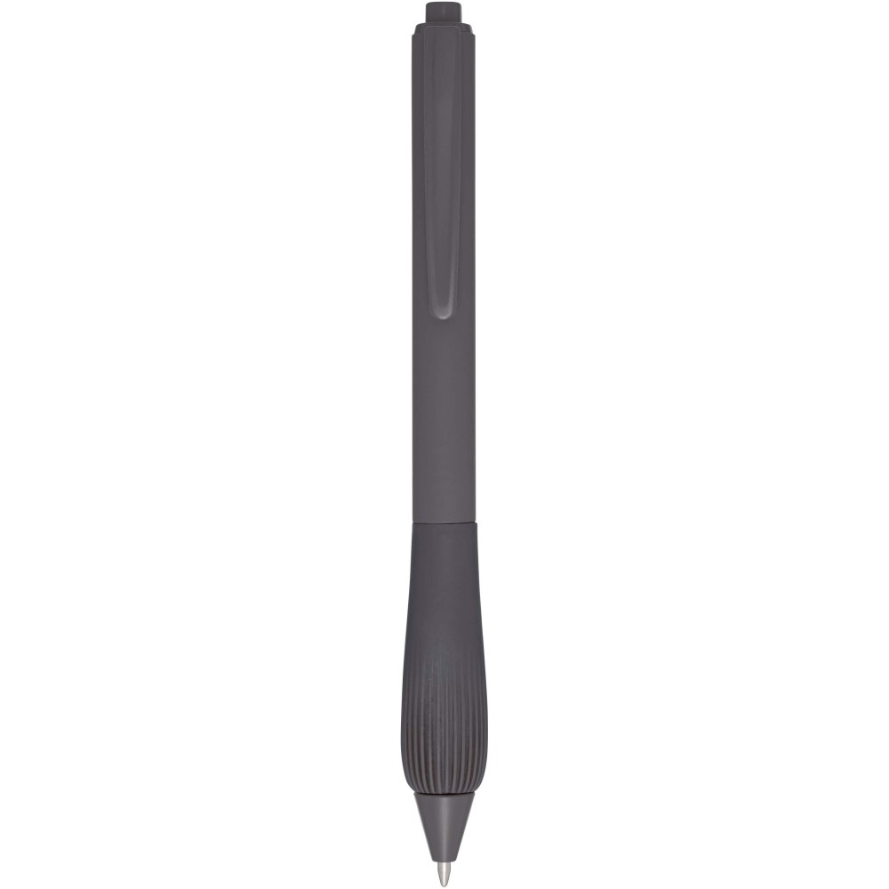 Újrahasznosított műanyag golyóstoll gumírozott tolltesttel és TPR anyagból készült fogórésszel. Kék tollbetéttel. Írási hossz: 1000 méter. Hegyméret: 1,0 mm.