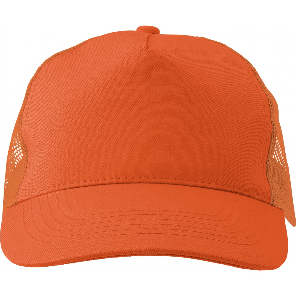 5 paneles, hálós sapka állítható műanyag csattal. 4 panel anyaga twill pamut, az 5. panel műanyag.
