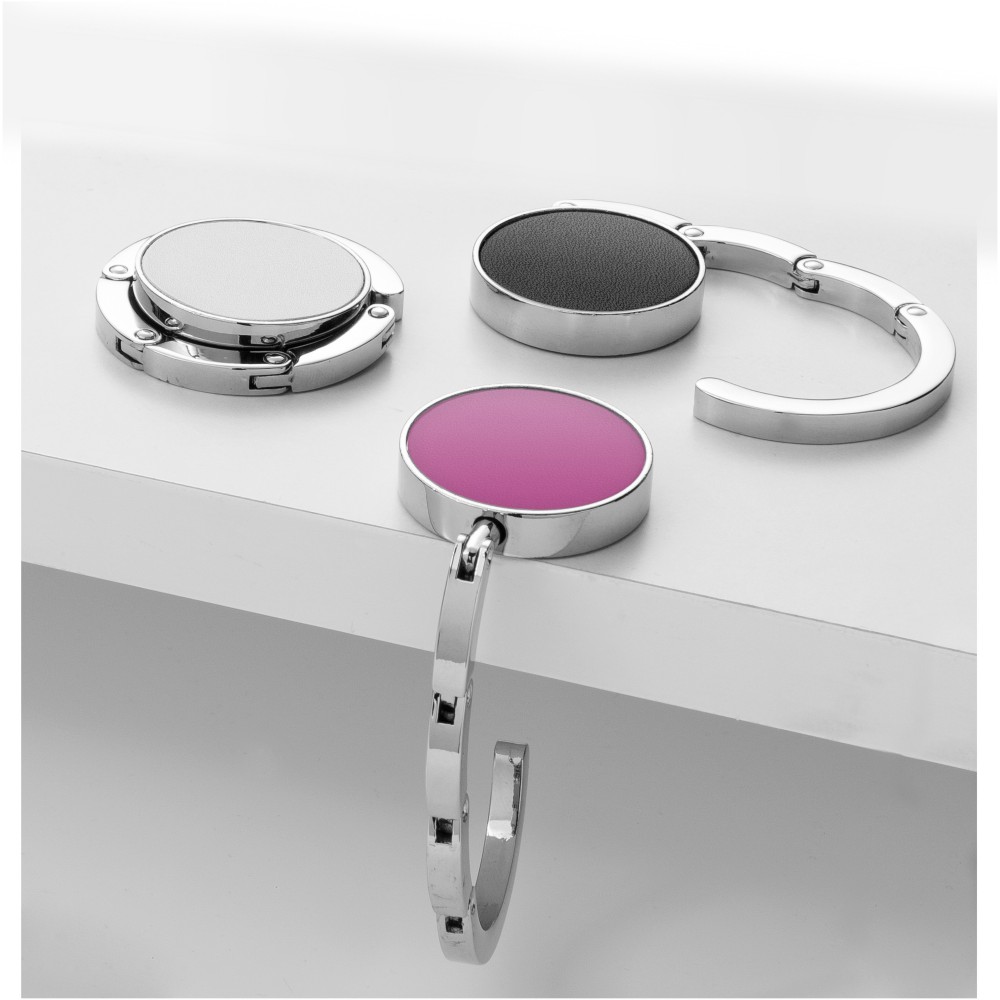 Összehajtható táskaakasztó, mellyel tisztán és biztonságban tarthatja táskáját. Az akasztót bármely felszín peremére felrögzítheti, max. 4,5 kg súlyt bír el. Fekete ajándékdobozban.