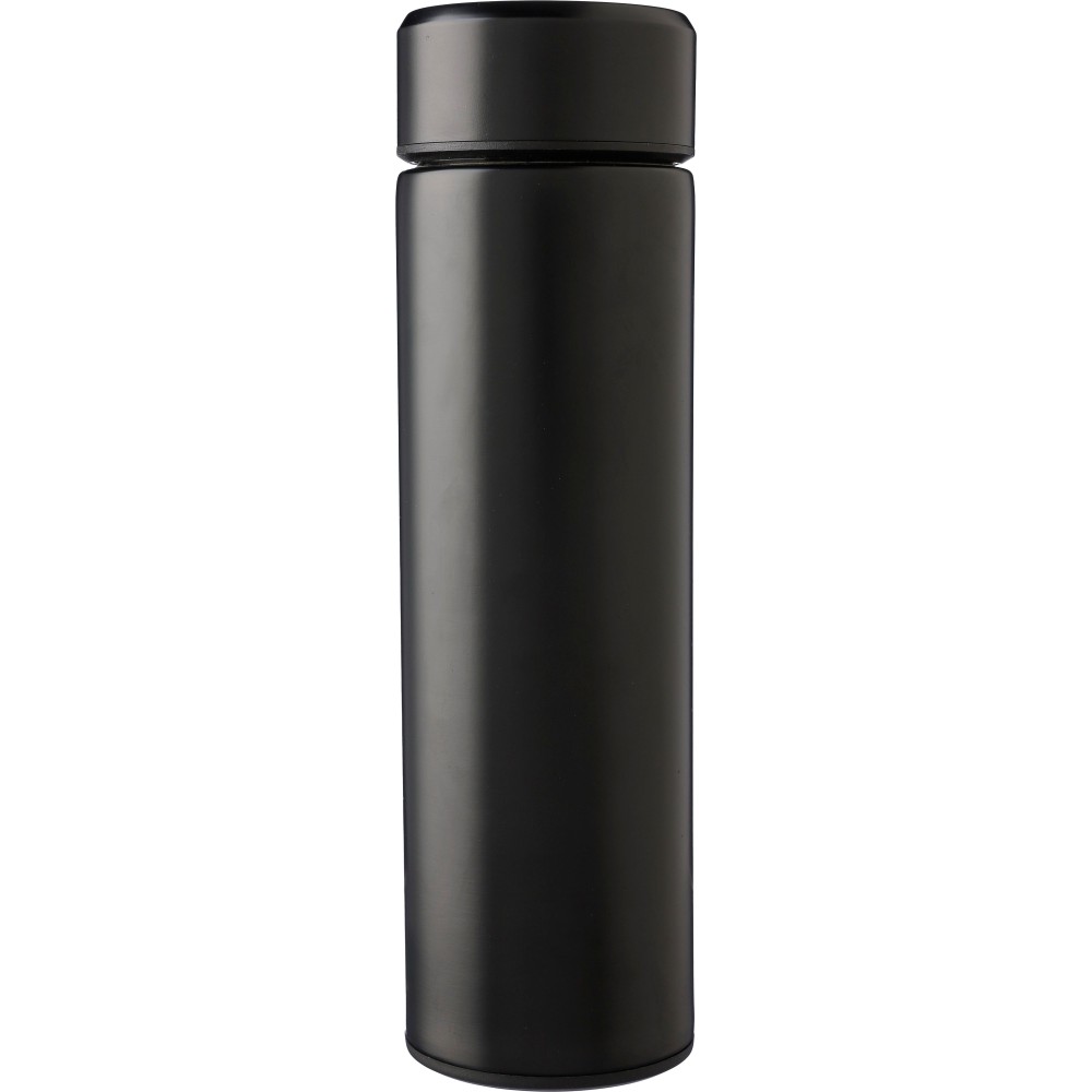 Duplafalú palack beépített, kivehető teaszűrővel. A belső rész 304-es rozsdamentes acélból, a külső rész 201-es rozsdamentes acélból készült. Egyenként barna kartondobozba csomagolva. Űrtartalom: 425 ml.