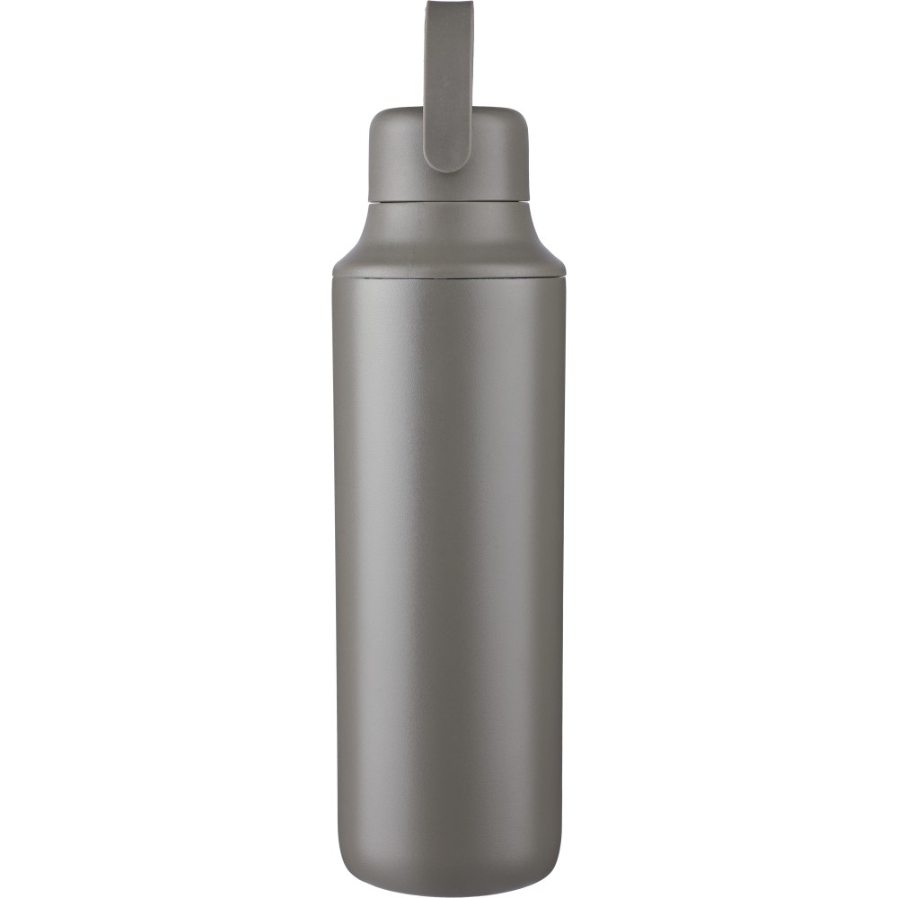 Duplafalú rozsdamentes acél kulacs (500 ml), belső anyaga 304-es rozsdamentes acél, külső része pedig 201-es rozsdamentes acél. Két tetővel szállítjuk: egy hordozófüles PP tetővel és egy átlátszó PS tetővel, amely a mellékelt rozsdamentes acél szívószállal, szilikon véggel és tartóval használható. Egyenként csomagolva, barna kartondobozban.