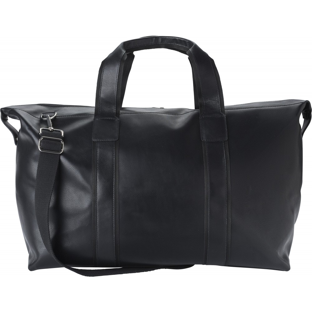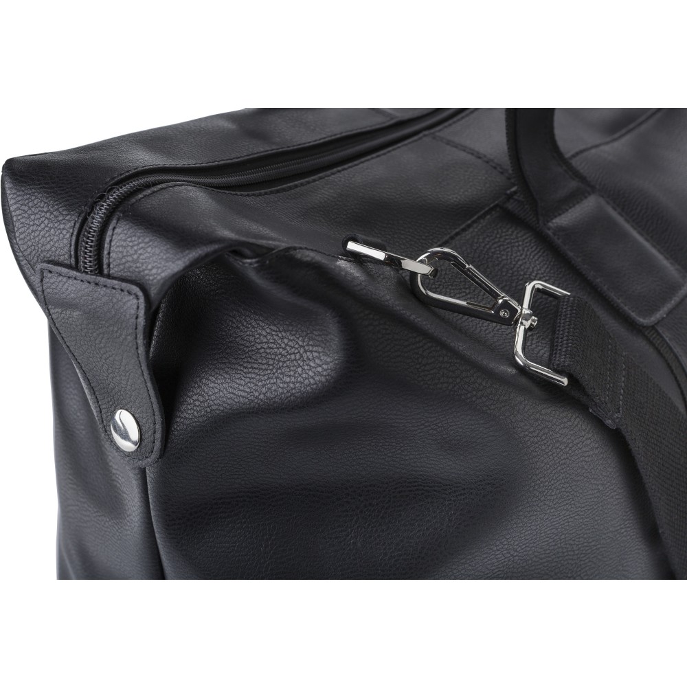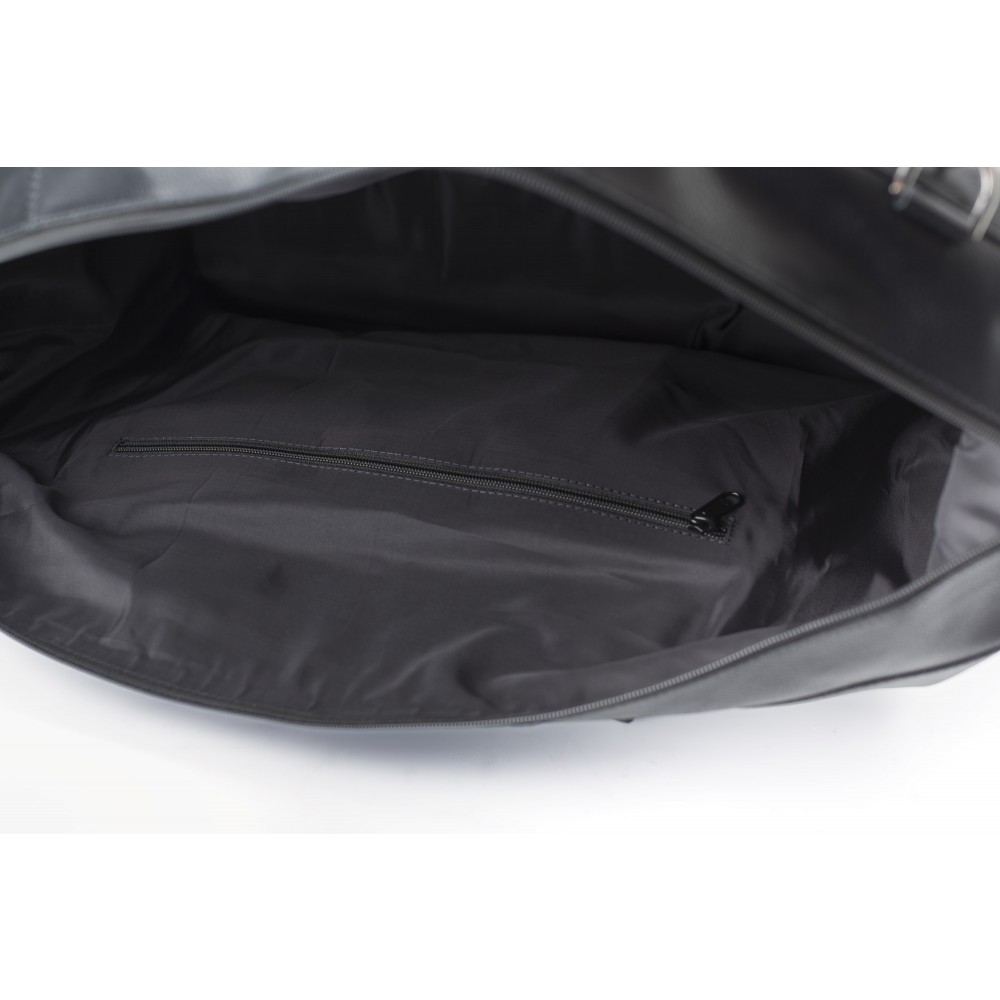 Bőr sporttáska cipzárral. Belsejében egy kis, cipzáras rekesz található. Két rövid fogantyúval és egy állítható vállpánttal.