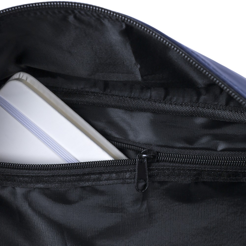 Újrahasznosított PU anyagból készült sporttáska 35 literes űrtartalommal, 210D újrahasznosított poliészter béléssel. 108 cm hosszúságú és 2,5 cm szélességű fogantyúval rendelkezik tépőzáras rögzítéssel, valamint 130 cm hosszúságú és 3,9 cm szélességű állítható vállpánttal. Elülső cipzáras zsebbel és nagy fő rekesszel készül. A belső címkén újrahasznosított alapanyagra utaló logó található.