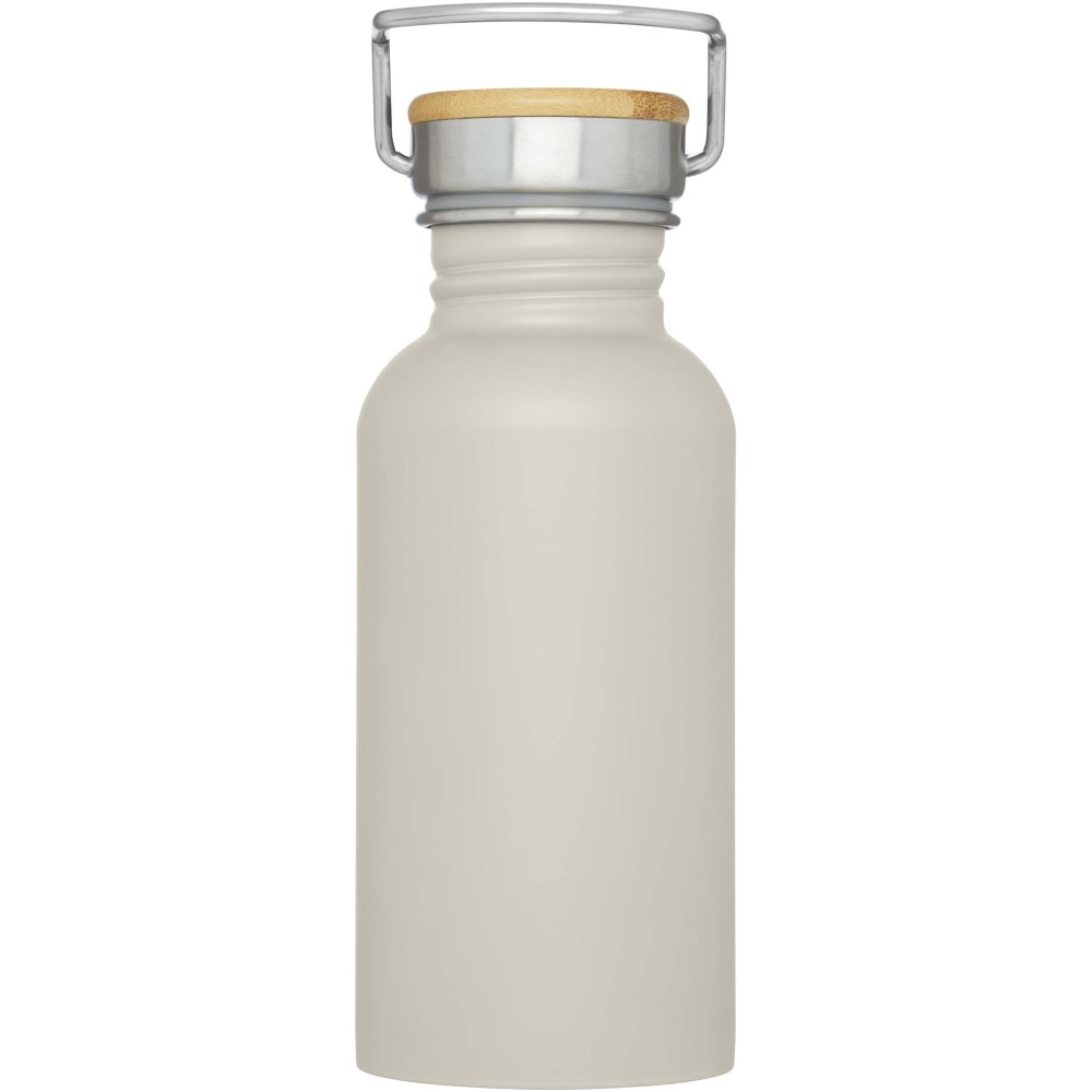 Egyfalú rozsdamentes acél palack csavaros tetővel. A fedélen bambusz rátét, valamint egy fül a könnyű hordozhatóságért. Szivárgásmentes. Szénsavas italokkal nem használható. Mosogatógépben nem mosható és mikrohullámú sütőben történő melegítésre nem alkalmas. Űrtartalom: 550 ml. Csomagolása Avenue díszdoboz. Rozsdamentes acél, bambusz.
